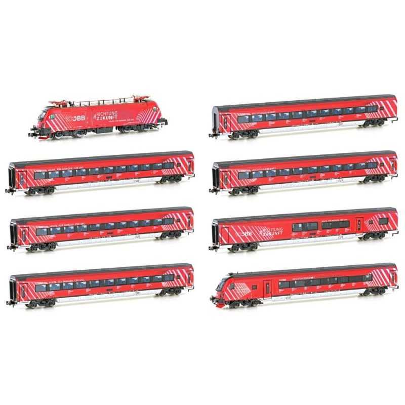 Hobbytrain H25227S OBB Treinset Railjet 8 delig met E-Loc Rh 1116 "Railjet/100 J. ÖBB" Digitaal met Sound
