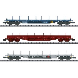Vorbild: 3 vierachsige Flachwagen mit Rungen der Bauart Rnss der CFL. 1 Rungenwagen der Bauart Res der SNCB, B-Cargo. 1 Rungenwagen der Bauart Rns der CFL, angemietet bei AAE.