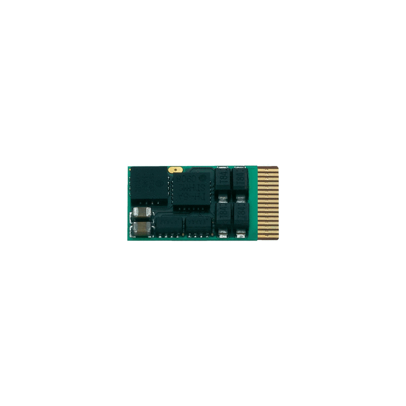 Robuster Multiprotokoll-Nachrüstdecoder, kurzschlussfest zwischen Motor und Gleis; Sicherheitsabschaltung bei Überstrom, Übertemperatur und Kurzschluss; neu entwickelte Motorregelung für extrem weichen Betrieb aller gängigen DC-Motoren; Weiterfahrt mit gleicher Geschwindigkeit nach Stromunterbrechung bis 1s; SUSI-gesteuerte Anfahrverzögerung (SUSI-WAIT); ein- oder zweiteilige Bremsstrecken; Spezielle Eigenschaften im Analogbetrieb: sehr niedrig einstellbare Anfahrspannung, Vmax-Begrenzung, dynamische fahrspannungsabhängige Dimmung von Licht und AUX, programmierbare Funktionen, typisch analoges Fahrverhalten;